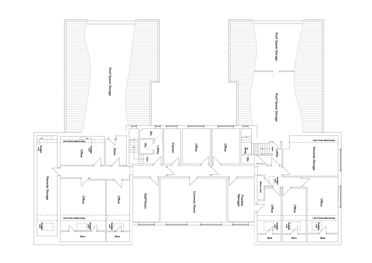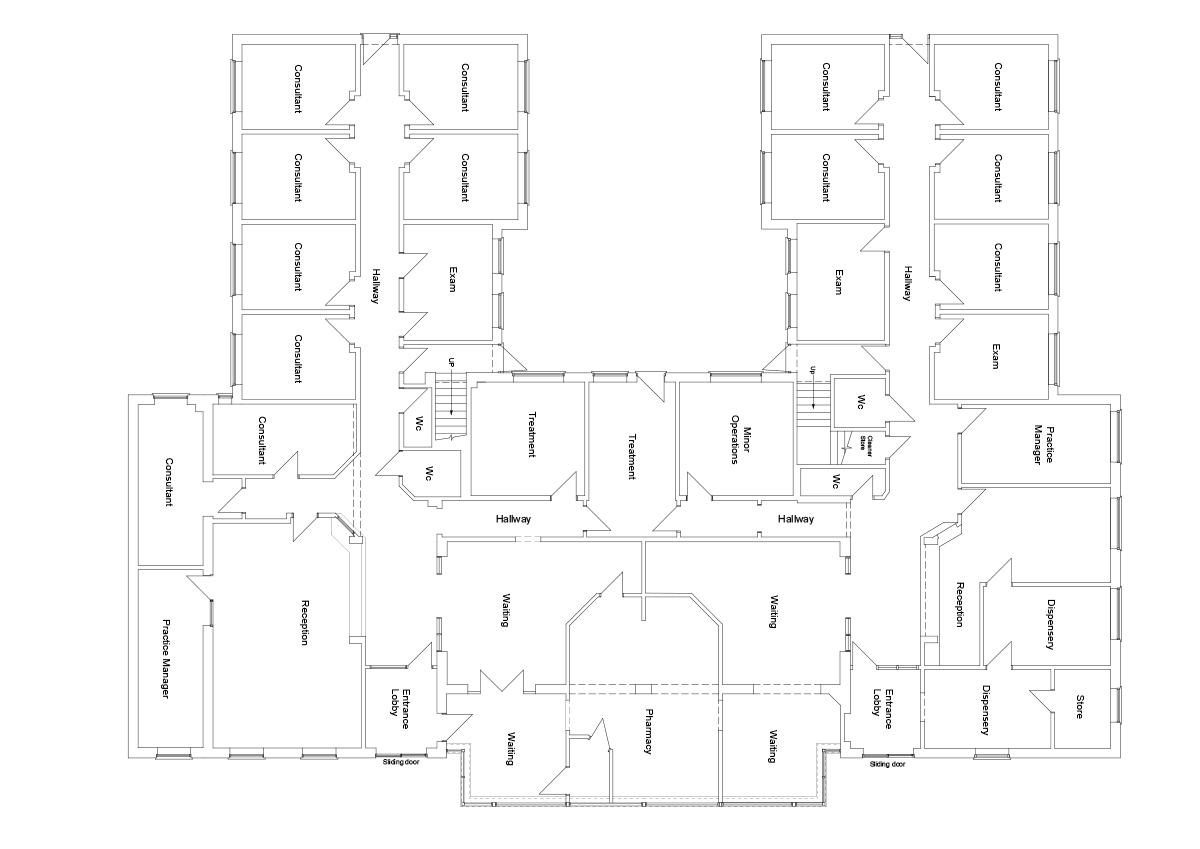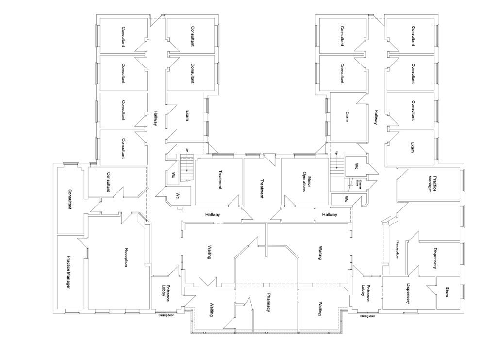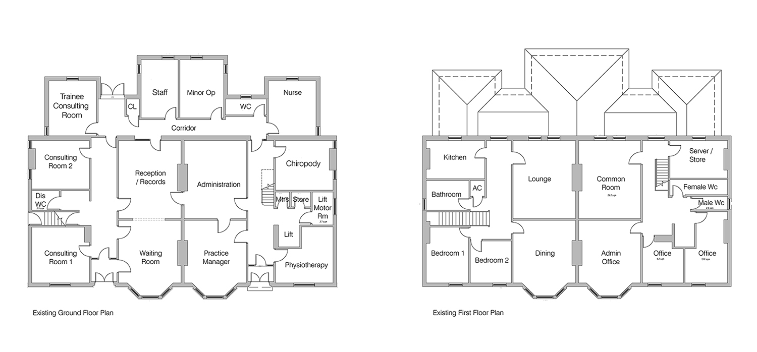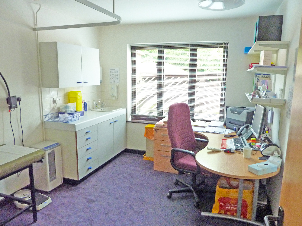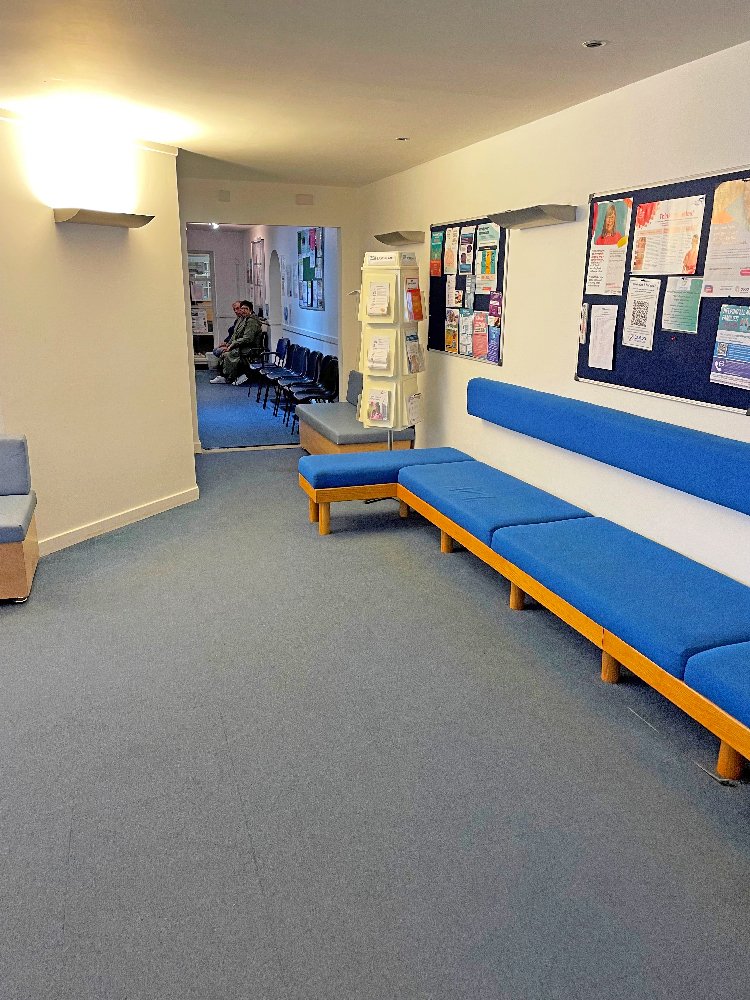 The original surgery consists of a double-doored main entrance lobby, which is shared access with the dentist along with shared patient WCs. A second set of double doors opens onto a large reception and waiting area. The waiting area is full height with a large glazed central part at the apex, allowing a large amount of natural light to enter the waiting area which has fixed seating for 34 patients.
