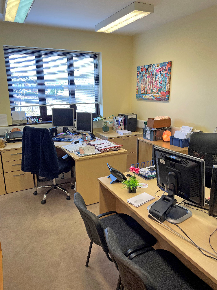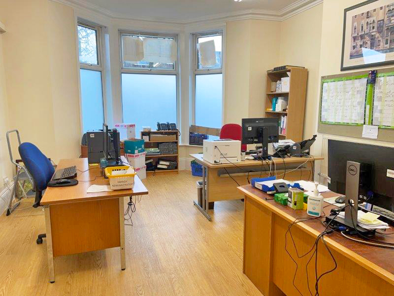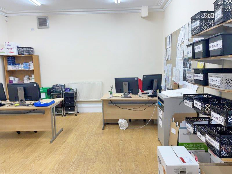 A common room/kitchen is located off the waiting room, which, allows access to a post room/store, a walk-through back office and onto the main reception room, with a hatch through to the waiting area.