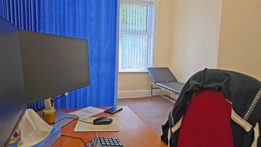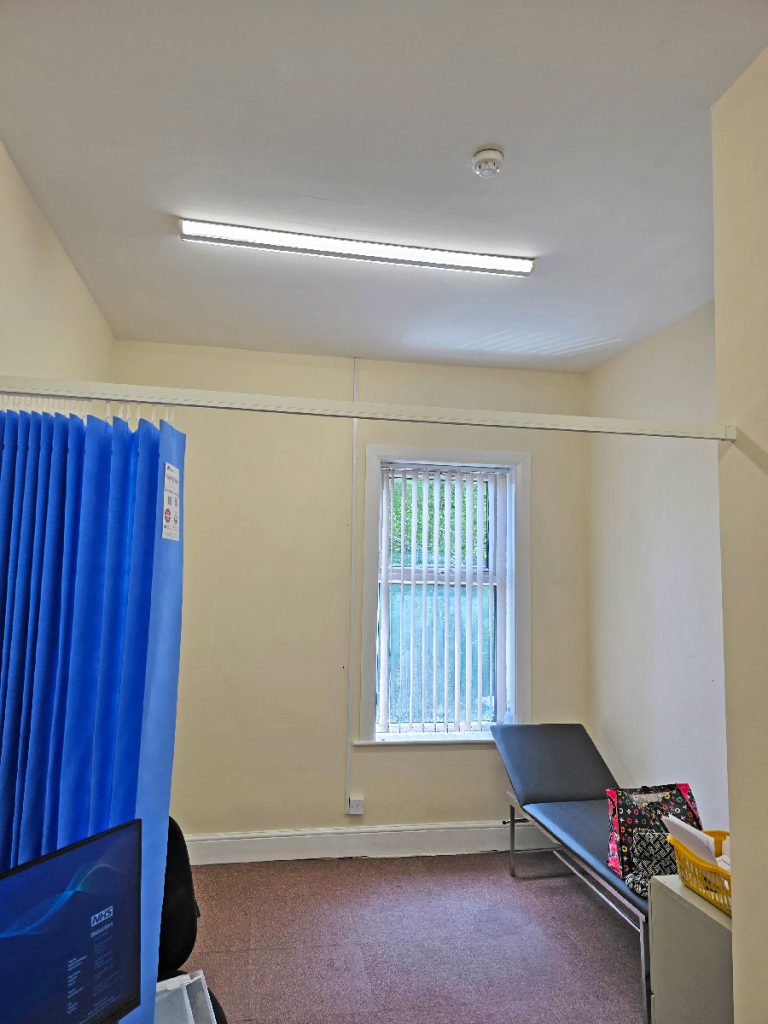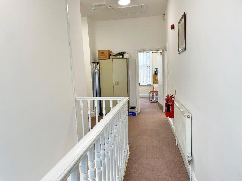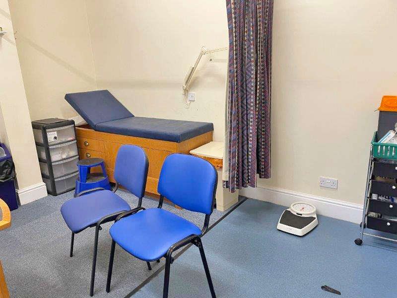 Off the waiting area, which benefits from new vinyl flooring throughout are seven consultation rooms, a nurse’s storeroom, and the practice’s central storeroom. An island to the rear of the waiting area contains a patient WC, a disabled WC, a small cleaner’s cupboard, and an electrical intake room with a small loft room above containing the server. The waiting area is heated by two hot/cold air conditioning units, with a storage heater to the rear corridor.